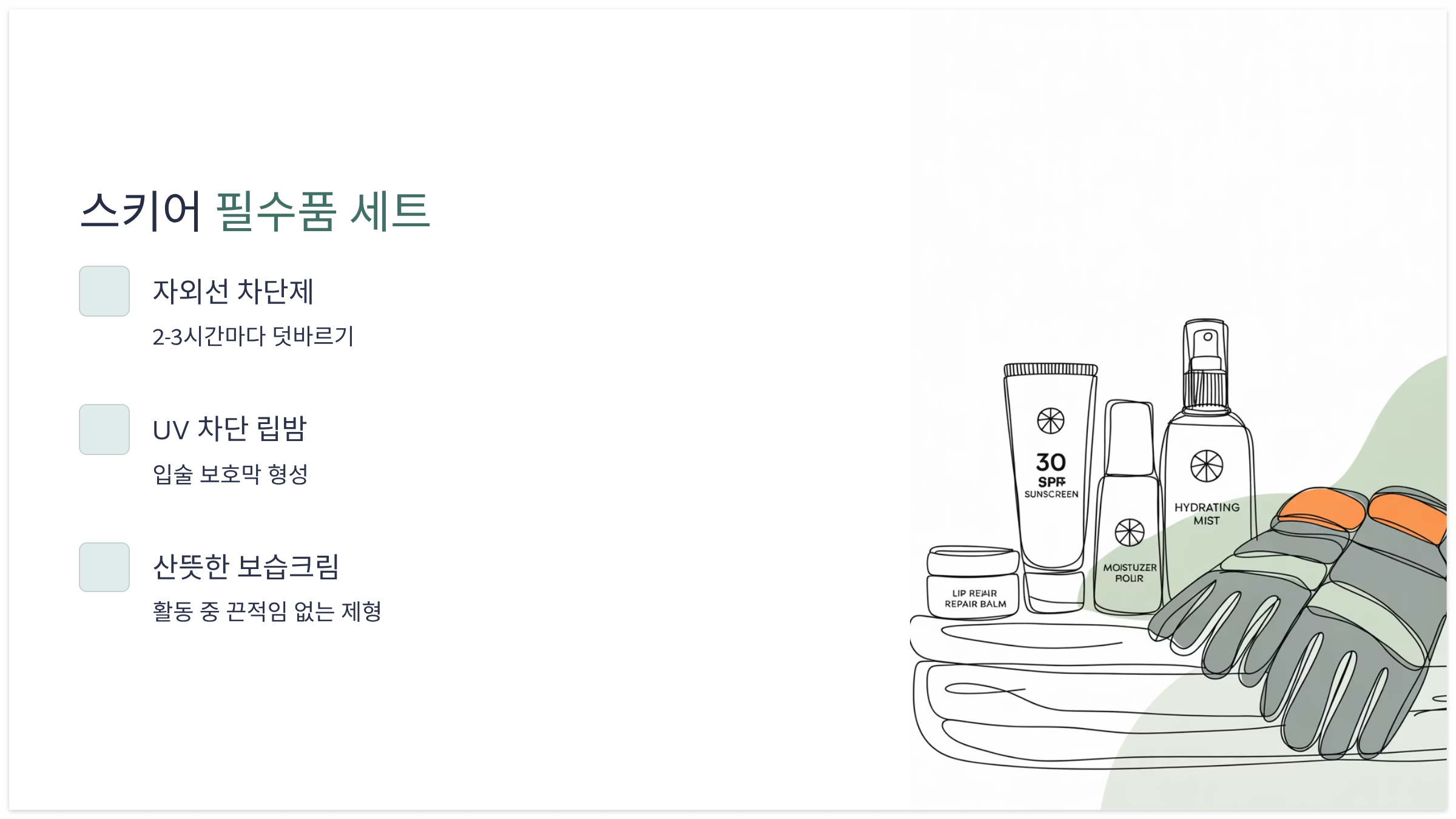 오늘은 스키어들이 꼭 알아야 할 피부 보호 및 보습 관리법을 정리해 보겠습니다.