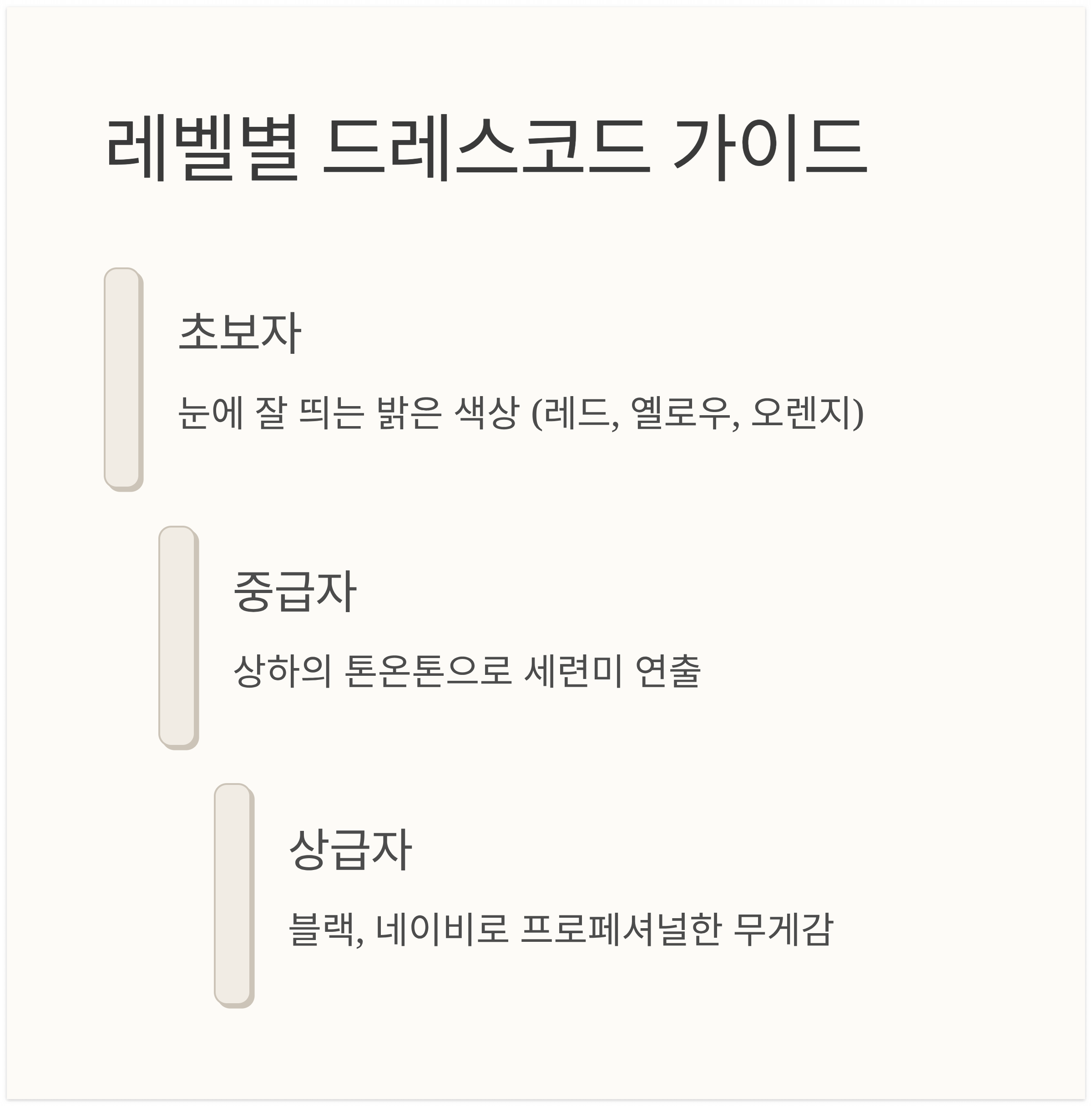 - 상의에 강한 색을 주고 하의를 뉴트럴하게(검정·네이비) 두면 안정적