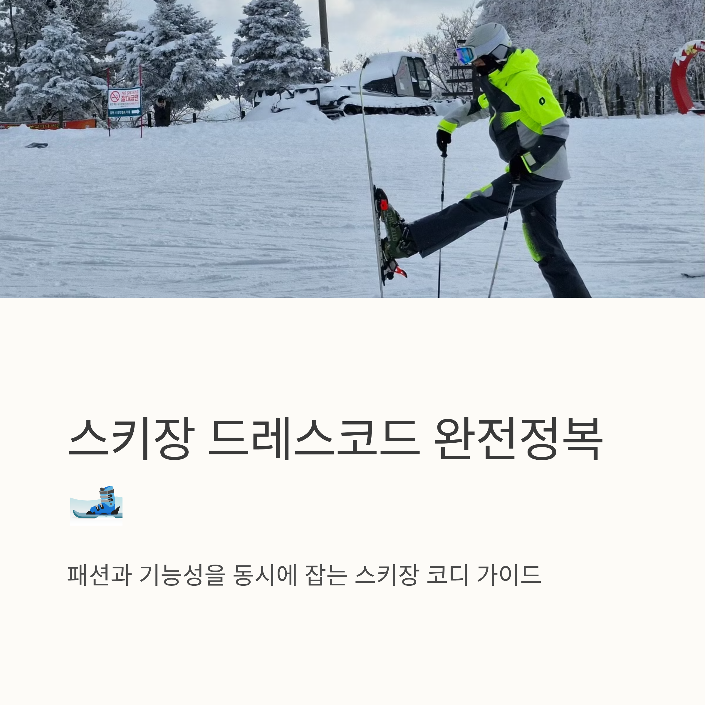 이번 글에서는 스키장 드레스코드와 패션 포인트, 그리고 사진 잘 찍히는 색상 조합을 정리해 드립니다.