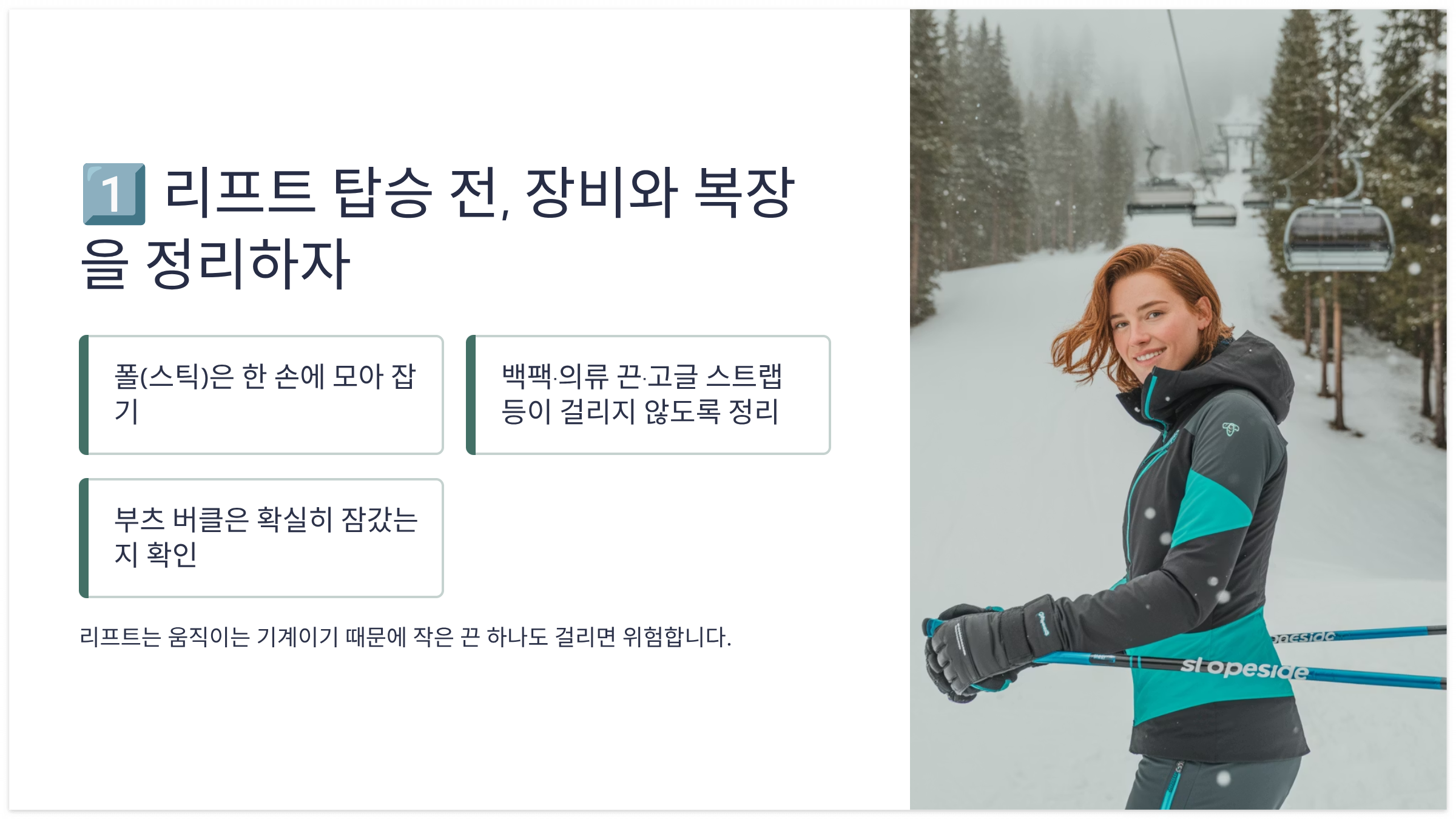 1️⃣ 리프트 탑승 전, 장비와 복장을 정리하자