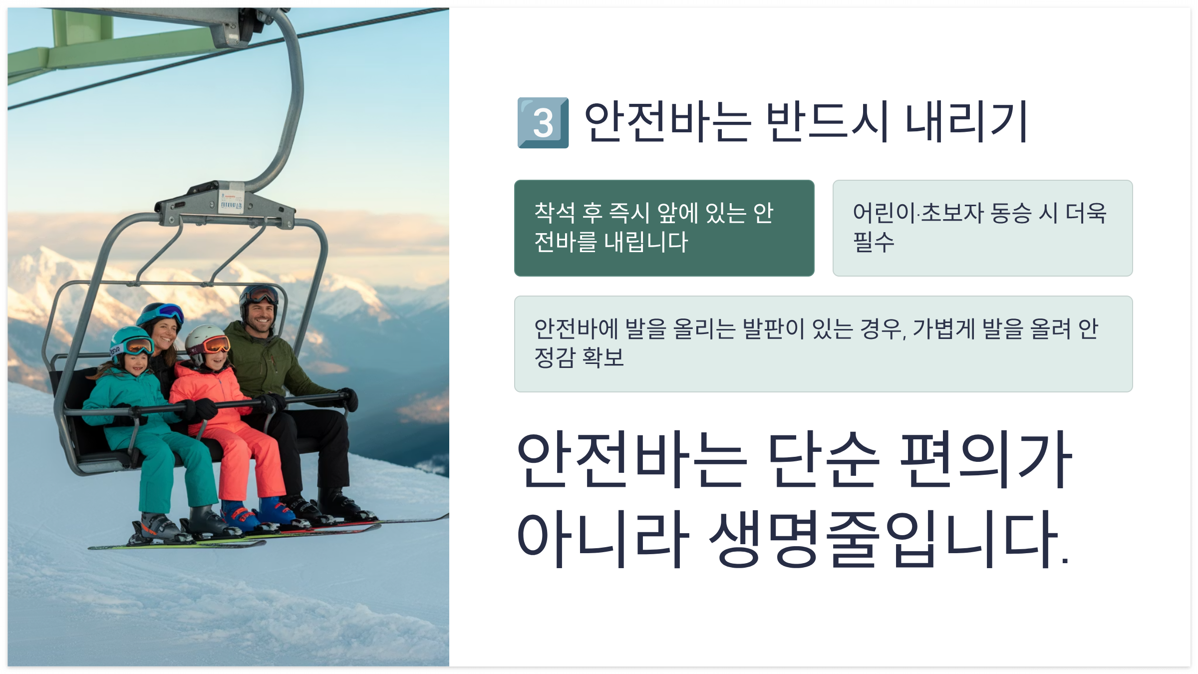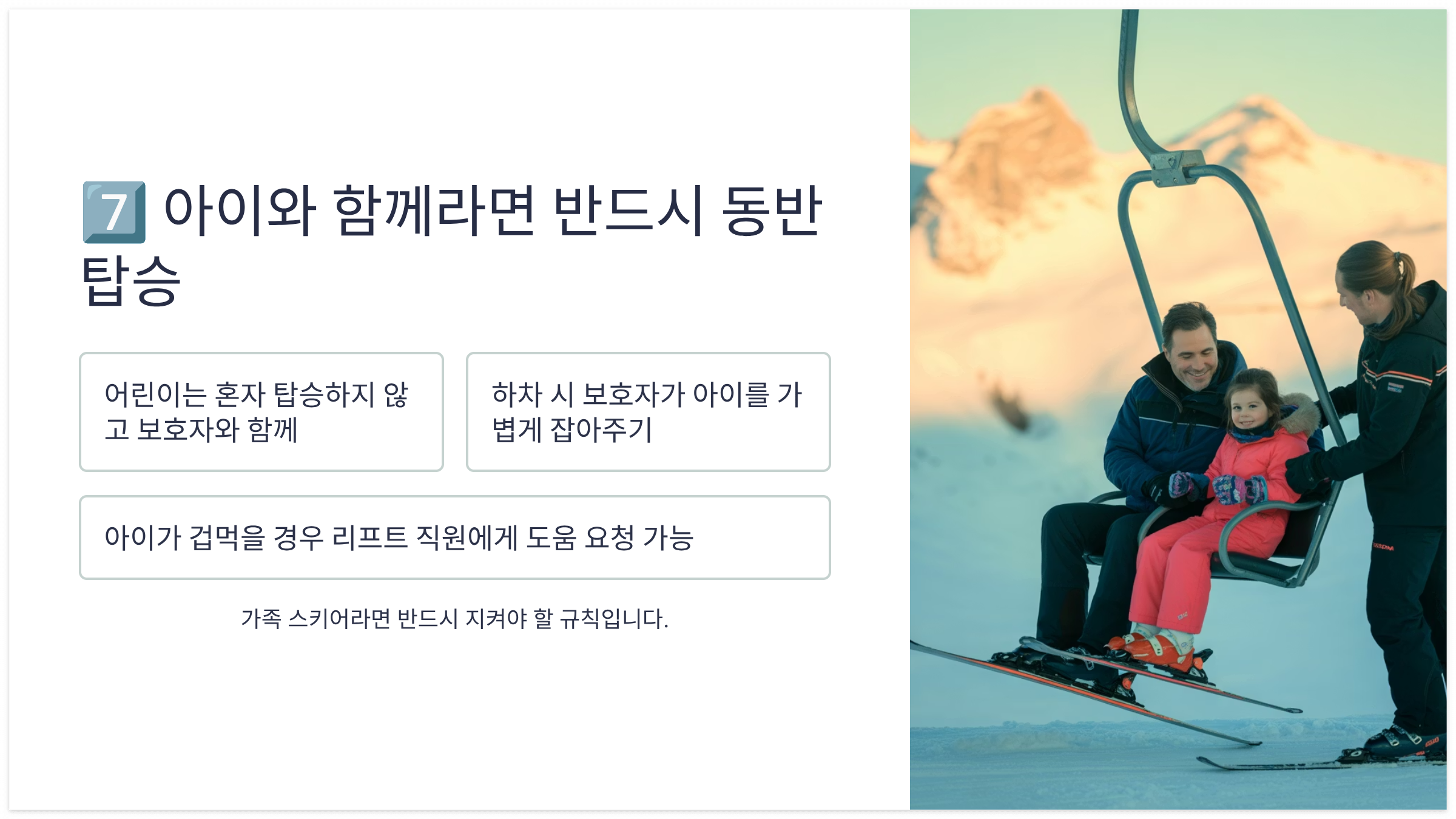 - 아이가 겁먹을 경우 리프트 직원에게 도움 요청 가능