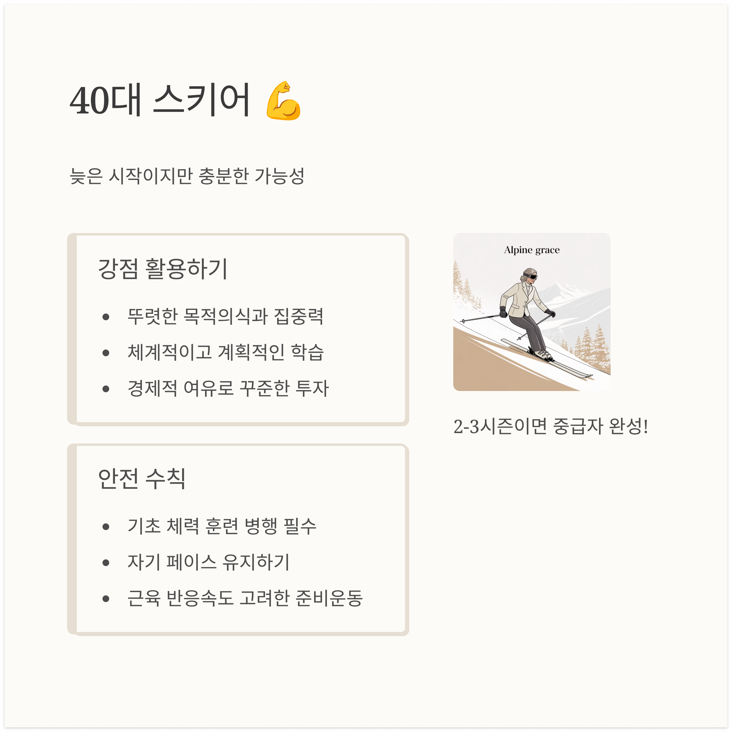 2. 40대 스키어 – 늦은 시작, 하지만 가능성 충분